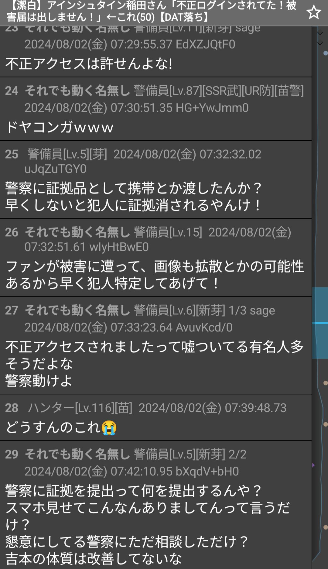 次は乗っ取り疑ってたなんG民の開示請求か